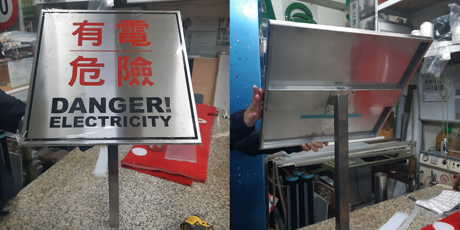 G-PP-2520-C:不鏽鋼25x20cm腐蝕牌,1.2"不鏽鋼圓管 或1.2"不鏽鋼方管,65cm